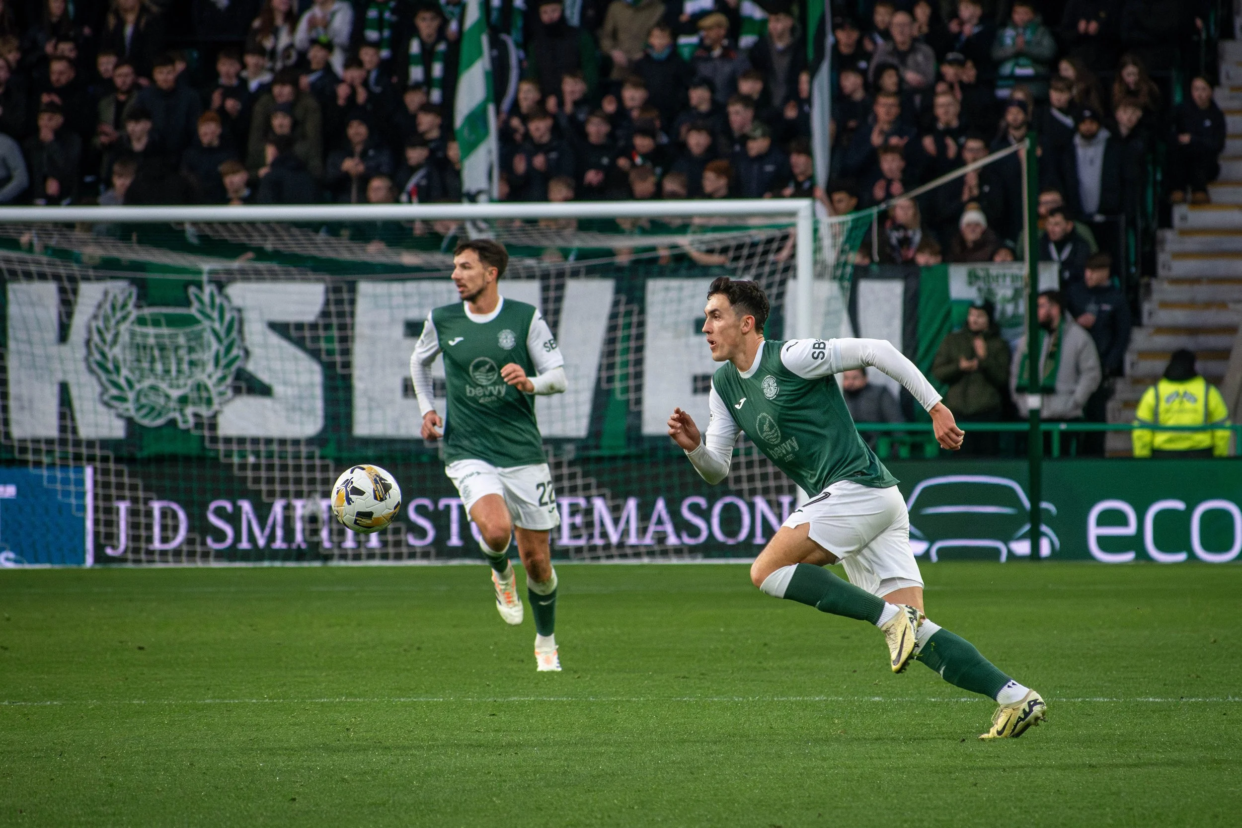 When I began photographing grassroot football in Edinburgh this summer, I never expected to find myself at a Scottish Premiership match before the year ended. Yet on the 22nd of November, I walked onto the pitch side of Easter Road Stadium in Leith, invited to photograph Hibernian F.C.’s home game against Dundee F.C. For someone used to community pitches, entering a professional arena with a capacity for thousands of supporters felt both unreal and exciting. Hibs was on a winning streak against Dundee this season, and with more than 17,700 tickets sold the atmosphere in the stadium was fantastic.